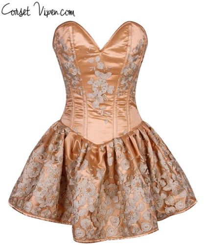 Elegant Floral Embroidered Steel Boned Short Corset Dress (Color: Gold)