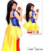 This Snow White Corset Costume has satin tie straps, headband, apple necklace, detachable long satin skirt, and removable garters and lace-up back for cinching. Even the seven dwarfs couldn't resist playtime! Comes in various sizes from small to 6x are available.